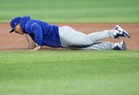 L.A. Dodgers manager Dave Roberts wipes out and falls while running the bases during batting practice ahead of game 6 of the World Series against the Toronto Blue Jays in Toronto on Thursday, October 30, 2025. THE CANADIAN PRESS/Nathan Denette