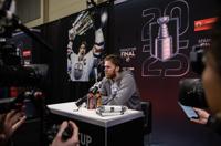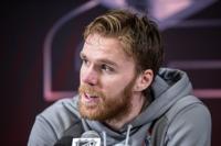 Edmonton Oilers' Connor McDavid (97) speaks to media after taking part in practice before Game 1 of the Stanley Cup final against the Florida Panthers, in Edmonton on Tuesday, June 3, 2025. THE CANADIAN PRESS/Jason Franson