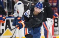 Edmonton Oilers' Evander Kane (91) takes part in practice before Game 1 of the Stanley Cup final against the Florida Panthers, in Edmonton on Tuesday, June 3, 2025. THE CANADIAN PRESS/Jason Franson