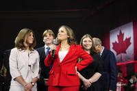 Liberal Party of Canada leadership candidate Chrystia Freeland delivers a speech as she's introduced during the Liberal leadership announcement in Ottawa on Sunday, March 9, 2025. THE CANADIAN PRESS/Justin Tang