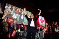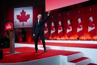 Liberal Leader Mark Carney turns to supporters after it was announced he won the leadership as his wife Diana Fox Carney looks on at the Liberal leadership announcement in Ottawa on Sunday, March 9, 2025. THE CANADIAN PRESS/Adrian Wyld