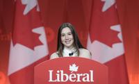 Ella-Grace Trudeau speaks as she introduces her father Prime Minister Justin Trudeau at the Liberal leadership announcement in Ottawa on Sunday, March 9, 2025. THE CANADIAN PRESS/Adrian Wyld