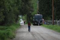 A supporter of Universal Ostrich Farms walks along the farm’s property in Edgewood, B.C., on Saturday, May 17, 2025. THE CANADIAN PRESS/Aaron Hemens
