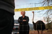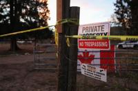 Police tape lines the perimeter of the Universal Ostrich Farms in Edgewood, B.C., on Monday, Sept. 22, 2025. THE CANADIAN PRESS/Aaron Hemens