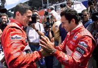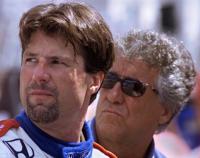 Motorola's Michael Andretti, left, watches the track as his father, racing legend Mario Andretti looks on, prior to practice at the CART Molson Indy in Toronto, on Saturday, July 14, 2001. Andretti retired as a driver after the Indianapolis 500 to concentrate on being a car owner. THE CANADIAN PRESS/Kevin Frayer