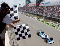 Former CART champion driver Alex Zanardi, who lost both his legs in a crash, waves the checkered flag at the finish line at the CART Molson Indy, in Toronto, on Sunday, July 7, 2002. Cristiano da Matta won his fourth consecutive race to tie a record co-held by Zanardi. THE CANADIAN PRESS/Frank Gunn
