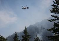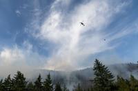 A helicopter works on the Dryden Creek Wildfire, just north of Squamish, B.C. on Wednesday, June 11, 2025. THE CANADIAN PRESS/ Tijana Martin