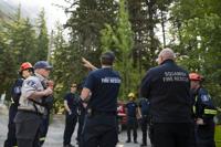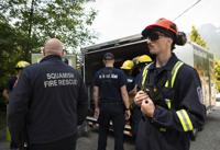 Members of Squamish Fire Rescue prepare to battle the Dryden Creek wildfire, north of Squamish, B.C., on Wednesday, June 11, 2025. THE CANADIAN PRESS/Tijana Martin