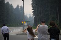 People watch the scene of the Dryden Creek wildfire, from an intersection along Highway 99 in Brackendale, north of Squamish, B.C, on Wednesday, June 11, 2025. THE CANADIAN PRESS/Tijana Martin