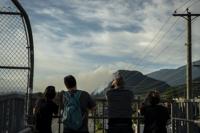 People watch the Dryden Creek wildfire from a pedestrian bridge in Squamish, B.C., on Tuesday, June 10, 2025. THE CANADIAN PRESS/Tijana Martin