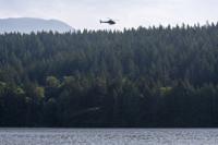 A helicopter collects water from Alice Lake Provincial Park to help fight the Dryden Creek Wildfire, just north of Squamish, B.C., on Wednesday, June 11, 2025. THE CANADIAN PRESS/Tijana Martin