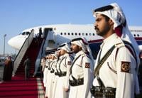 Outside the Amiri Diwan — the heart of the Qatari government — a group of men riding camels lined up on the grass. Armed men on horseback wearing bandoliers lined the path to greet the prime minister’s motorcade.
