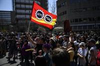 "We are taking the bridge," chanted a large group of picketing workers as they marched across it.