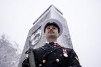 A ceremonial guard stands at the Cenotaph during a Remembrance Day ceremony in Montreal, Tuesday, Nov. 11, 2025. THE CANADIAN PRESS/Christopher Katsarov