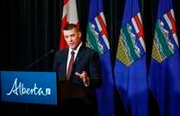 Doyle Piwniuk, Minister of Transportation and Infrastructure, speaks to the media at a press conference at the Manitoba Legislative Building in Winnipeg, Manitoba, Tuesday January 18, 2022. The Manitoba government plans to impose stiffer penalties on motorists who ignore warning signs and drive on closed roads.THE CANADIAN PRESS/David Lipnowski