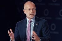 Manitoba Premier Wab Kinew looks on as Bernadette Smith, Minister of Housing, Addictions and Homelessness and Minister responsible for Mental Health is sworn-in by Lt. Gov. Anita Neville at a Premier and cabinet swearing-in ceremony in Winnipeg, Wednesday, Oct. 18, 2023. THE CANADIAN PRESS/John Woods