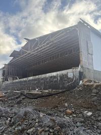 High winds tore the wall of this abandoned fish sauce plant in St. Mary's, N.L., shown on Jan, 17, 2026, leaving more than 100 oozing vats of fermented fish sauce exposed to the nearby ocean. THE CANADIAN PRESS/Handout - Steve Ryan (Mandatory Credit)