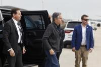 U.S. Secretary of State Antony Blinken exits a vehicle as he gets ready to depart for Saudi Arabia in the latest Gaza diplomacy push, at Joint Base Andrews, Md., Saturday, April 28, 2024. (Evelyn Hockstein/Pool Photo via AP)