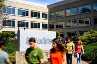 Workers pass a sign at YouTube headquarters on Thursday, March 26, 2026, in San Bruno, Calif. (AP Photo/Noah Berger)