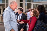 Linda Singer, an attorney representing the state, and Donald Migliori, attorney with the law firm MotleyRice celebrate after the jury reached a verdict against Meta for violated state consumer protection laws and ordering the social media company to pay $375 million in damages to the state, Tuesday, March 24, 2026, in Santa Fe, N.M. (Nathan Burton/Santa Fe New Mexican via AP, Pool)