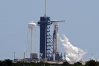 A SpaceX Falcon 9 rocket, left, with the crew Dragon capsule attached, sits on Kennedy Space Center's Launch Pad 39-A Friday, Aug. 1, 2025, in Cape Canaveral, Fla. (AP Photo/Chris O'Meara)