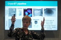 Biohub Founding Technical Director Bridget Carragher speaks during a tour of the Biohub Imaging Institute in Redwood City, Calif., Wednesday, Nov. 5, 2025. (AP Photo/Jeff Chiu)