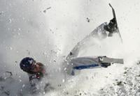 Photo-Gallery-Year-2025 03 Jacques BoissinotUpdated Dec 15, 2025 Christopher Lillis, of the USA, falls on landing on Saturday, Jan. 25, 2025, at the FIS freestyle world cup aerials in Lac-Beauport, Quebec. L…