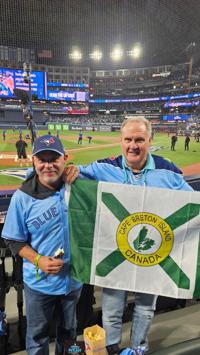 A Cape Breton flag was proudly held aloft throughout the game in Toronto on Friday by longtime Jays fan, John Chishom.聽