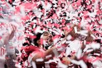 Fire officials and witnesses on scene told local media that a person was seen jumping off the balcony and landing on the canopy of the building's sign. She was taken to hospital in serious condition.