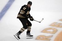 Boston Bruins left wing Milan Lucic (17) during a hockey game, Tuesday, Oct. 3, 2023, in Boston. (AP Photo/Charles Krupa)