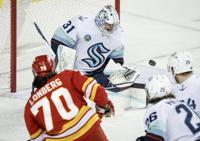 Seattle's 34-year-old goaltender made 41 saves to backstop the surging Kraken to a 5-1 NHL victory over the Calgary Flames.