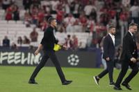 Benfica's head coach Bruno Lage leaves at the end of a Champions League opening phase soccer match between SL Benfica and Qarabag FK at the Luz stadium in Lisbon, Tuesday, Sept. 16, 2025. (AP Photo/Armando Franca)