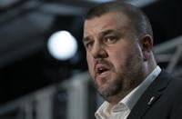 Canada skip Brad Gushue calls out to the sweepers while playing Team Manitoba-Dunstone during the playoffs at the Montana's Brier in Kelowna, B.C., on March 8, 2025. THE CANADIAN PRESS/Darryl Dyck