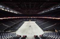 Workers talk on the arena floor at TD Coliseum in Hamilton on Wednesday, Nov. 19, 2025. THE CANADIAN PRESS/Nick Iwanyshyn