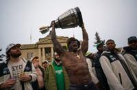 REGINA - The Grey Cup champions Saskatchewan Roughriders paraded down the streets of Regina with cheering fans, bringing the CFL's top prize all the way to the legislature.聽