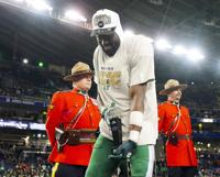 Saskatchewan Roughriders' Samuel Emilus (19) is presented with the Most Valuable 好色tv after winning the 112th CFL Grey Cup against the Montreal Alouettes, in Winnipeg on Sunday, Nov. 16, 2025. THE CANADIAN PRESS/Frank Gunn