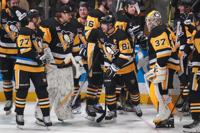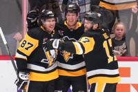 Crosby tipped Erik Karlsson’s point shot at 7:58 of the first period for a goal to tie the record. He then broke the mark with 7:20 left in the period when his shot on a power play hit Bryan Rust and Rickard Rakell tapped the rebound behind Jakub Dobes.