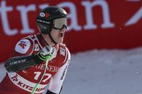 Austria's Raphael Haaser speeds down the course during an alpine ski, men's World Cup Super-G, in Kitzbuehel, Austria, Friday, Jan. 24, 2025. (AP Photo/Giovanni Auletta)
