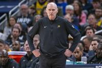 Indiana Pacers head coach Rick Carlisle watches play on the court during the first half of an NBA basketball game against the Toronto Raptors in Indianapolis, Wednesday, Feb. 26, 2025. (AP Photo/Doug McSchooler)