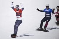 University of New Brunswick Reds head coach Gardiner MacDougall, right, celebrates with Benjamin Corbeil after defeating the University of Alberta Golden Bears to win the gold medal in the USports University Cup men’s hockey championship in Charlottetown, Sunday, March 19, 2023. The University of New Brunswick Reds men’s hockey team capped off a perfect regular season over the weekend with a resounding win over the University of Prince Edward Island.THE CANADIAN PRESS/Darren Calabrese
