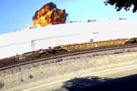 This image taken from video, shows an explosive fire as a small plane crashes into a commercial building in Fullerton, Calif. on Thursday, Jan. 2, 2025. (RUCCI FORGED via AP)