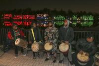 The African drummers play music after the lighting of boathouse row in honor of the Kwanzaa holiday, Dec. 26, 2018, in Philadelphia. (Steven M. Falk/The Philadelphia Inquirer via AP, File)