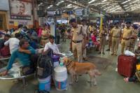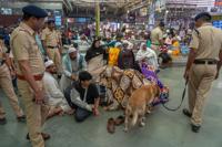 Security personnel along with a sniffer dog check the luggage of passengers at Chhatrapati Shivaji Terminus in Mumbai, India, as part of enhanced security following Monday's deadly car blast in the Indian capital, Tuesday, Nov. 11, 2025. (AP Photo/Rafiq Maqbool)