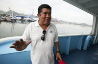 Oscar Meza Oregon, captain of the tuna boat "Maria Delia" whose crew discovered Australian Timothy Lyndsay Shaddock lost at sea in an incapacitated catamaran in the Pacific Ocean, gives an interview on his boat in Manzanillo, Mexico, Wednesday, July 19, 2023. After being adrift with his dog for three months, Shaddock and his dog Bella were rescued by Meza's crew some 1,200 miles from land. (AP Photo/Fernando Llano)