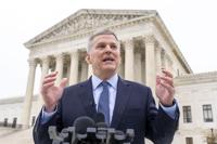 FILE - North Carolina Attorney General Josh Stein speaks in front of the Supreme Court in Washington, on Dec. 7, 2022. Mark Meadows, the former White House chief of staff to President Donald Trump, won't face voter fraud charges related to his 2020 registration and absentee vote in North Carolina, Stein announced Friday, Dec. 30, 2022. (AP Photo/Andrew Harnik, File)