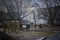 Firefighters stand by a building destruction at the site of an explosion which destroyed several apartments and injured multiple people, at The Hague, Saturday, Dec. 7, 2024. (AP Photo/Phil Nijhuis)