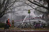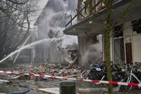 Firefighters hose down a site of an explosion which destroyed several apartments and injured multiple people, at The Hague, Saturday, Dec. 7, 2024. (AP Photo/Phil Nijhuis)