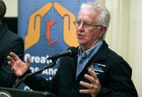Paul Krekorian, president of the Los Angeles City Council, talks during a press conference at the start of the annual homeless count in the North Hollywood section of Los Angeles, Tuesday, Jan. 23, 2024. (AP Photo/Richard Vogel)