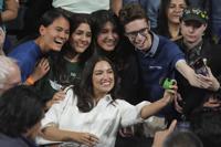 “She has become an inspiration to millions of young people,” Sanders said of , recounting her biography from a girl who helped her mother clean houses and later became a bartender before emerging as political insurgent who ousted a powerful New York Democrat in a U.S. House primary.
