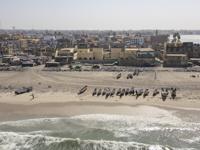 Aerial view of the fishing town of St Louis, Senegal, Thursday, March 13, 2025. (AP Photo/Sylvain Cherkaoui)